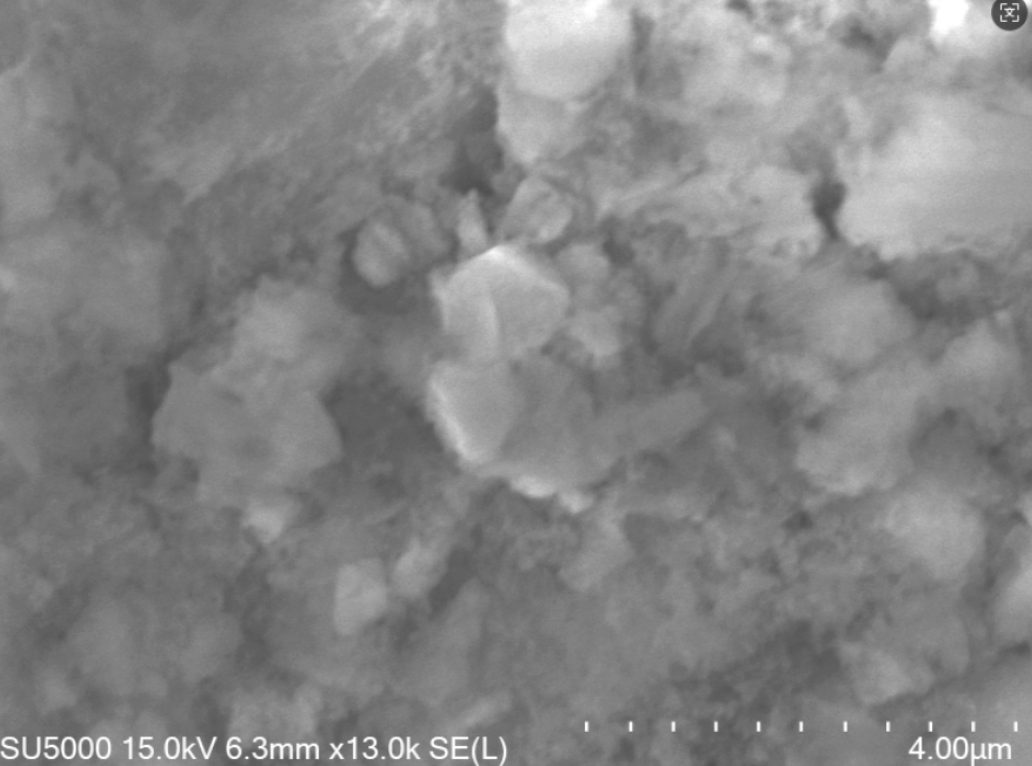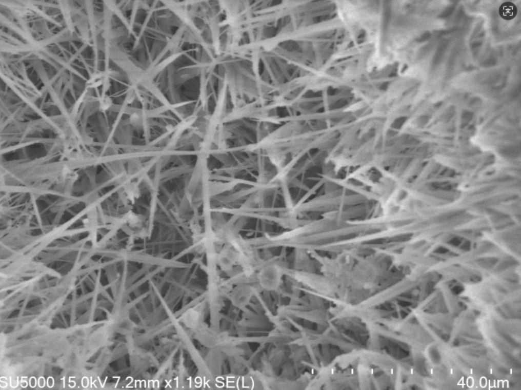 果(采用5000倍电子显微镜拍摄混凝土孔隙间赛柏 斯结晶的电镜照片)。