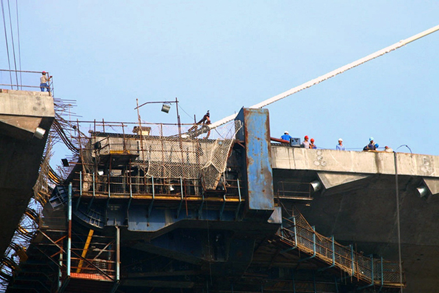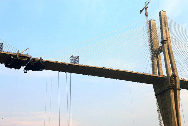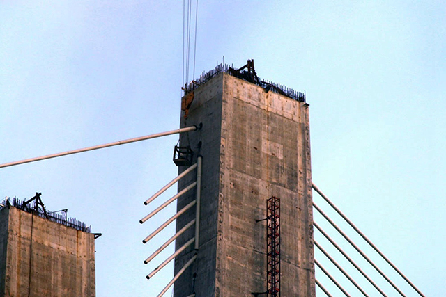 项目已经进入尾声阶段,大桥南部 6#桥墩左侧塔柱锚固区内进行焊接作业时失火,导致西侧23根拉索之中的 9 根拉索在大约 85分钟的时间内被烧断。